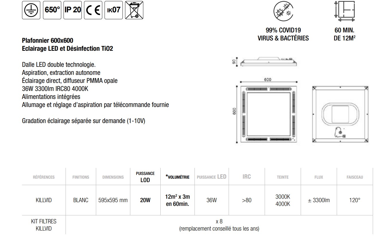Pratique, ce purificateur d’air en dalle 600/600 vous permet de l’intégrer à votre convenance sur tout faux-plafond standard.