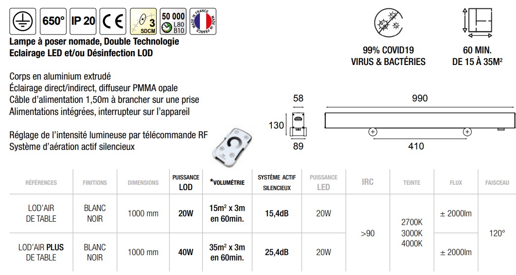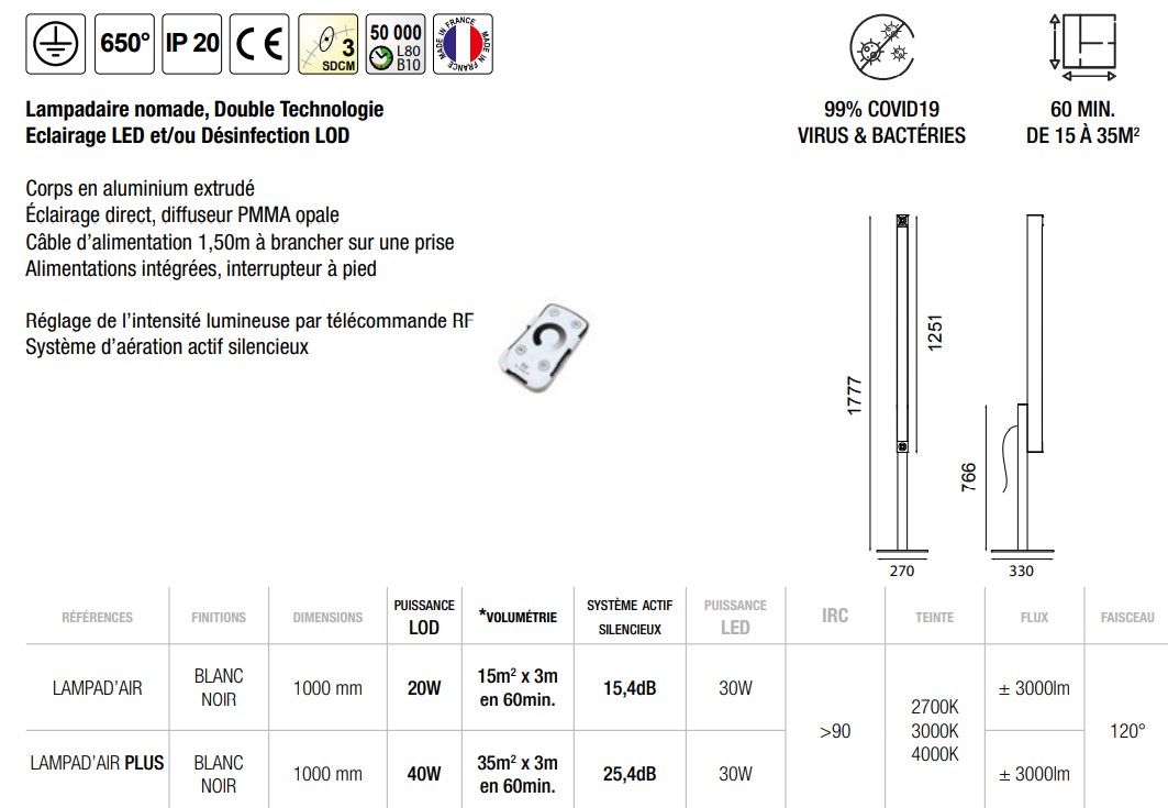 Indépendamment ou conjointement, vous pouvez l’utiliser en éclairage de votre espace purifié avec variation de l’intensité d’éclairage.