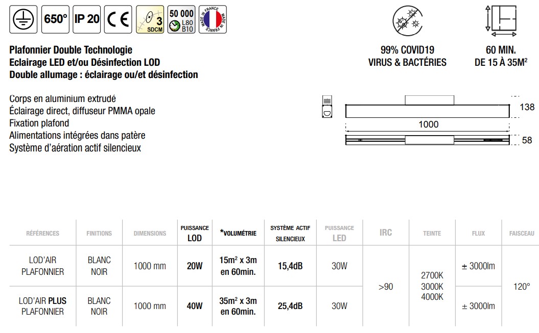 l'intégration des purificateurs d'air dans vos éclairages de tout type c'est révolutionnaire.